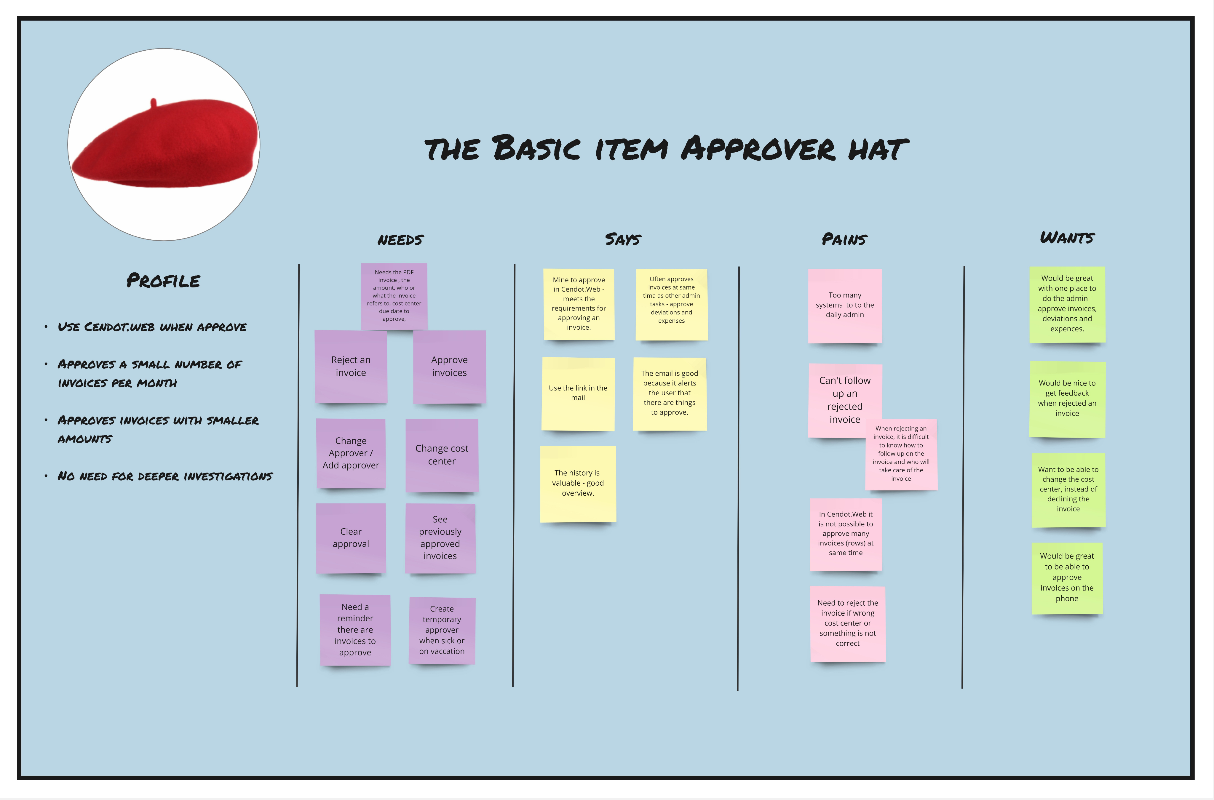 Med dessa "hattar" kartlade jag användarnas behov och utmaningar, och identifierade vilken funktionalitet som kunde förbättra deras effektivitet i det nya gränssnittet.