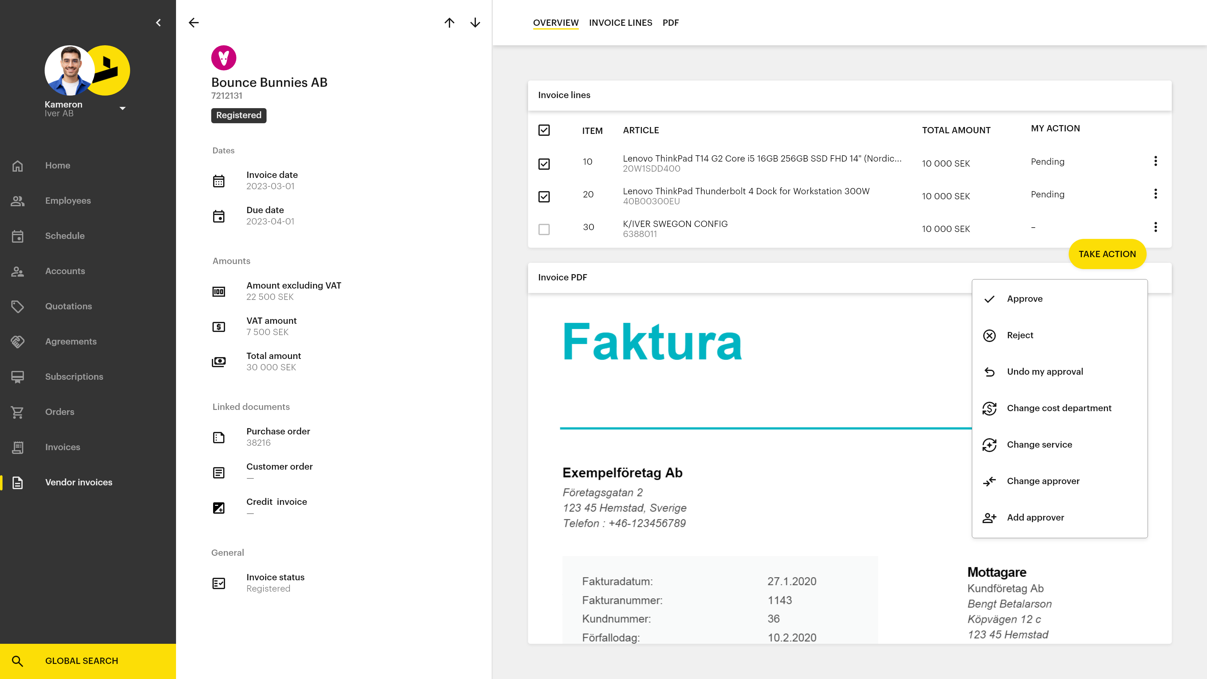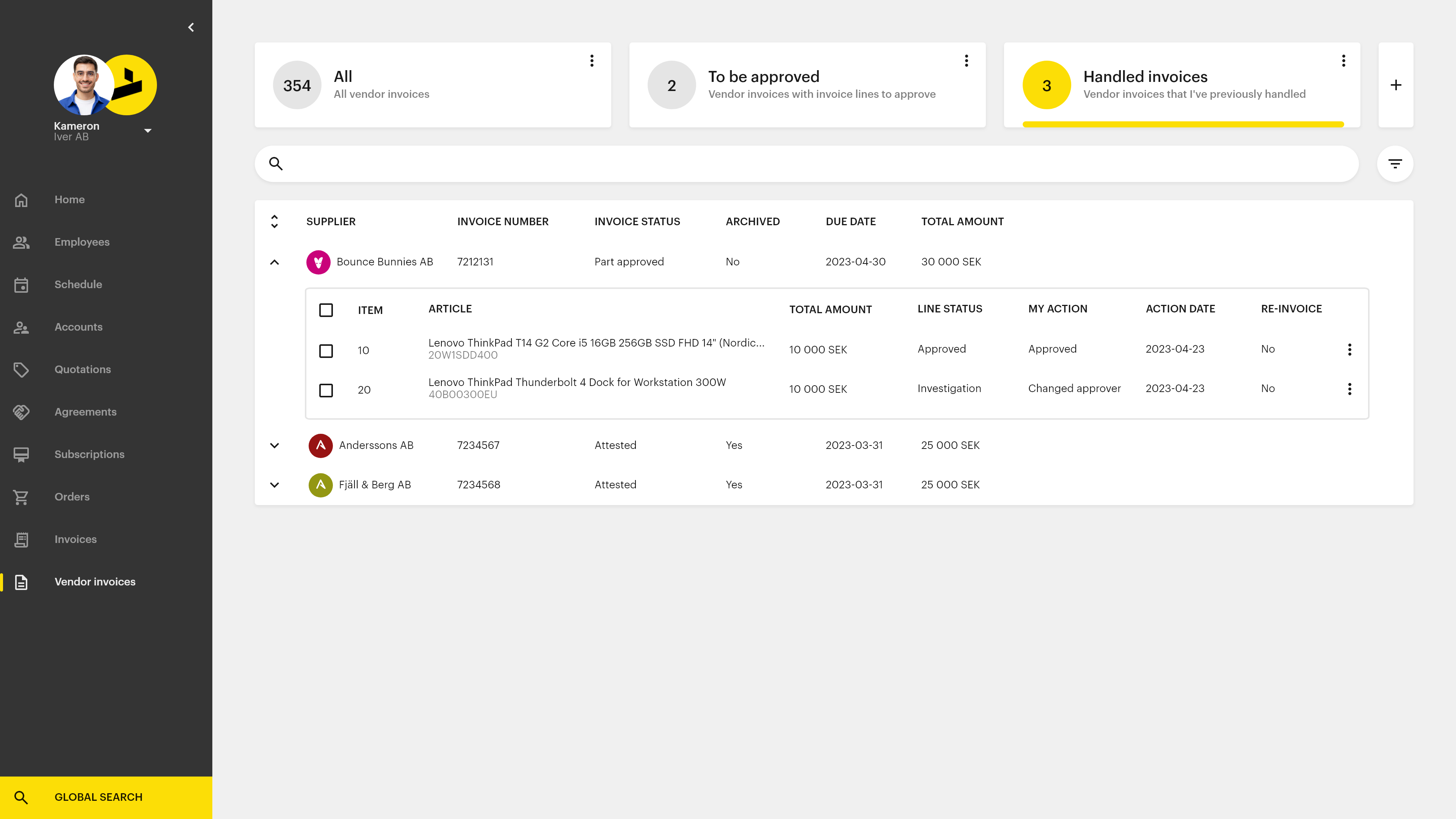 Enligt användarna var en övergripande önskan en sammanfattande översiktssida för snabb hantering av mindre fakturor, samt lättillgängliga länkar för djupare utredningsinformation vid behov. Dessutom skulle det vara enkelt att se hanterade fakturor, redigeringar och deras aktuella status.